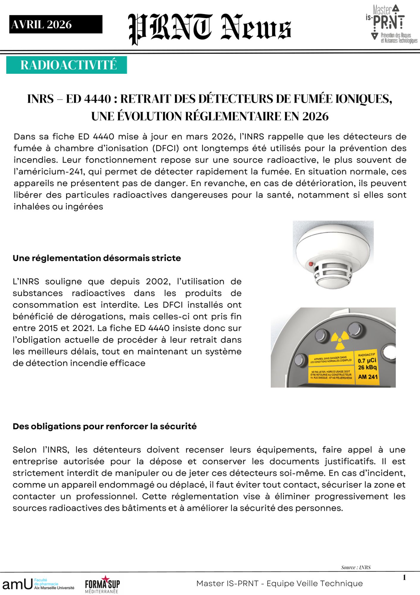 ⹠Radioactivité : retrait des détecteurs de fumée ioniques