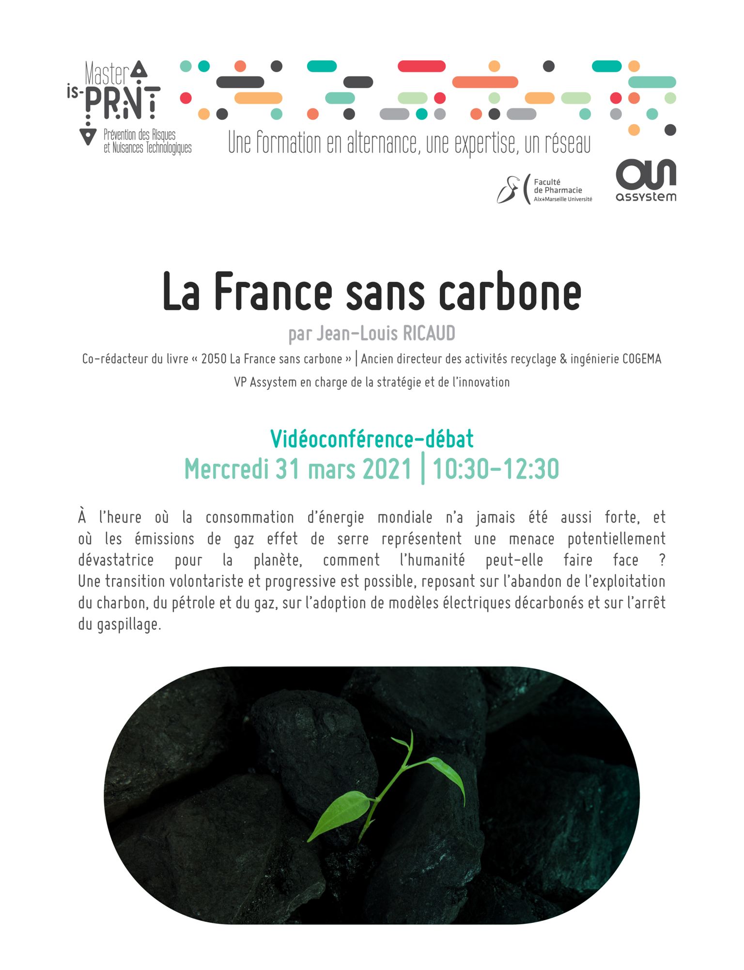 Retrouvez l’analyse en de Jean-Louis RICAUD, Vice-Président en charge de la stratégie et de l’innovation chez Assystem et co-rédacteur du livre « 2050 la France sans carbone », en podcast à l’occasion de la vidéoconférence-débat qui s’est tenue avec les étudiants du master is-PRNT le mercredi 31 mars 2021.